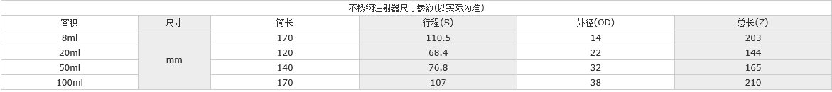 不銹鋼注射器采用316不銹鋼和Viton(或全氟)O型圈密封,避免了玻璃注射器破碎的傷害,提供非常高的化學抗性,耐溫、耐壓能力強;采用電子束焊接牢固可靠。有多種規(guī)格和接頭形式滿足不同用戶需求。適合于腐蝕性、粘稠液體處理,高壓應用等。