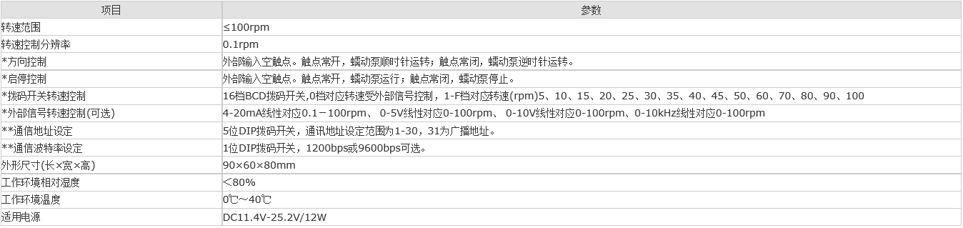 說明:*項(xiàng)目為撥碼開關(guān)結(jié)合外部信號(hào)控制方式所特有
