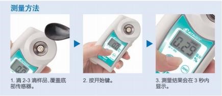 滴2-3滴樣品至數顯鹽度計棱鏡表面→按下START(開始)鍵→測量值及溫度將在3秒內顯示。