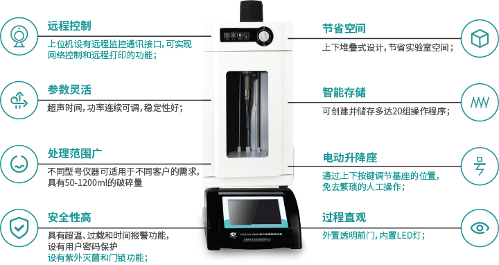 • 處理范圍廣 不同型號儀器可適用于不同客戶的需求,具有50-1200ml的破碎量