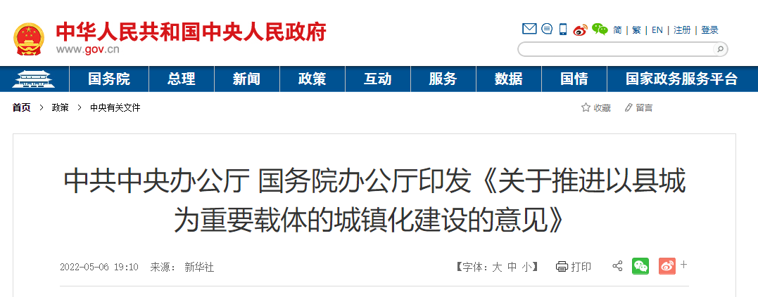 5月6日,中共中央辦公廳、國務(wù)院辦公廳印發(fā)了《關(guān)于推進以縣城為重要載體的城鎮(zhèn)化建設(shè)的意見》,并發(fā)出通知,要求各地區(qū)各部門結(jié)合實際認真貫徹落實。