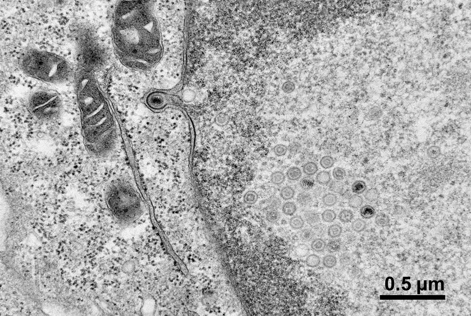 Vero細胞內的HSV病毒(被感染細胞的組織切片)